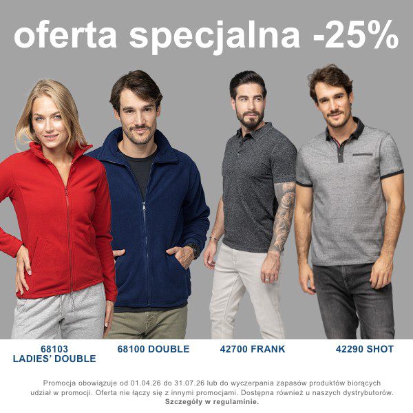 SPRAWDŹ TERAZNASZE PROMOCJEOdkryj modne i wysokiej jakości ubrania od sprawdzonych producentów z atrakcyjnymi rabatami.REGULAMIN PROMOCJIKONTAKT Produkty Dowiedz się więcej SHOTCrimson SKU: 42290 Dowiedz się więcej FRANKCrimson SKU: 42700 Dowiedz się więcej DOUBLEPromostars SKU: 68100 Dowiedz się więcej LADIES’ DOUBLEPromostars SKU: 68103